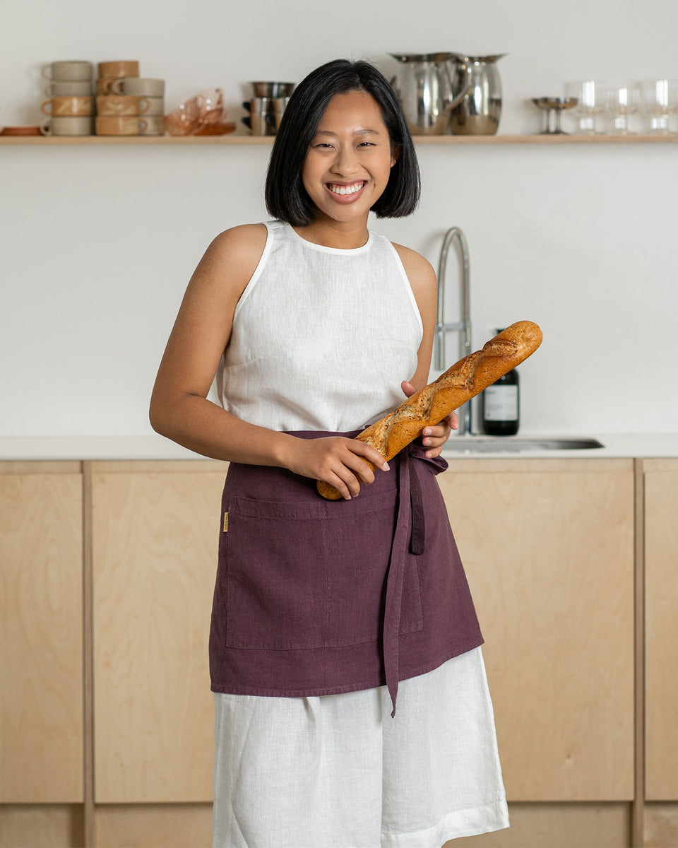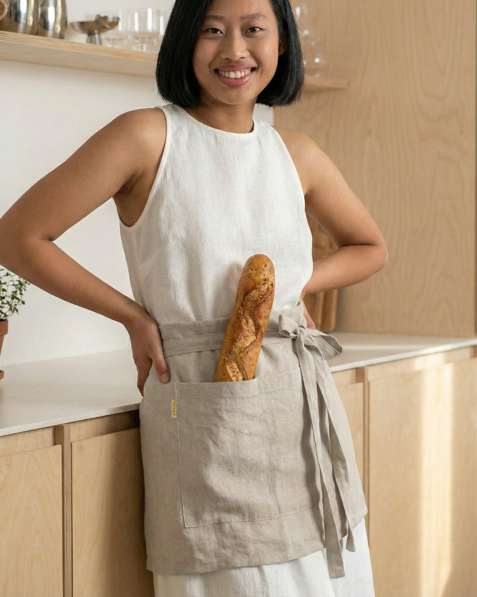 Classic, practical, and organic, our Linen waist aprons will protect your clothing from spills, stains, and other mess. Crafted from 100% Linen, this server apron features a traditional wrap-around style, which makes it easier to move around in than full aprons.