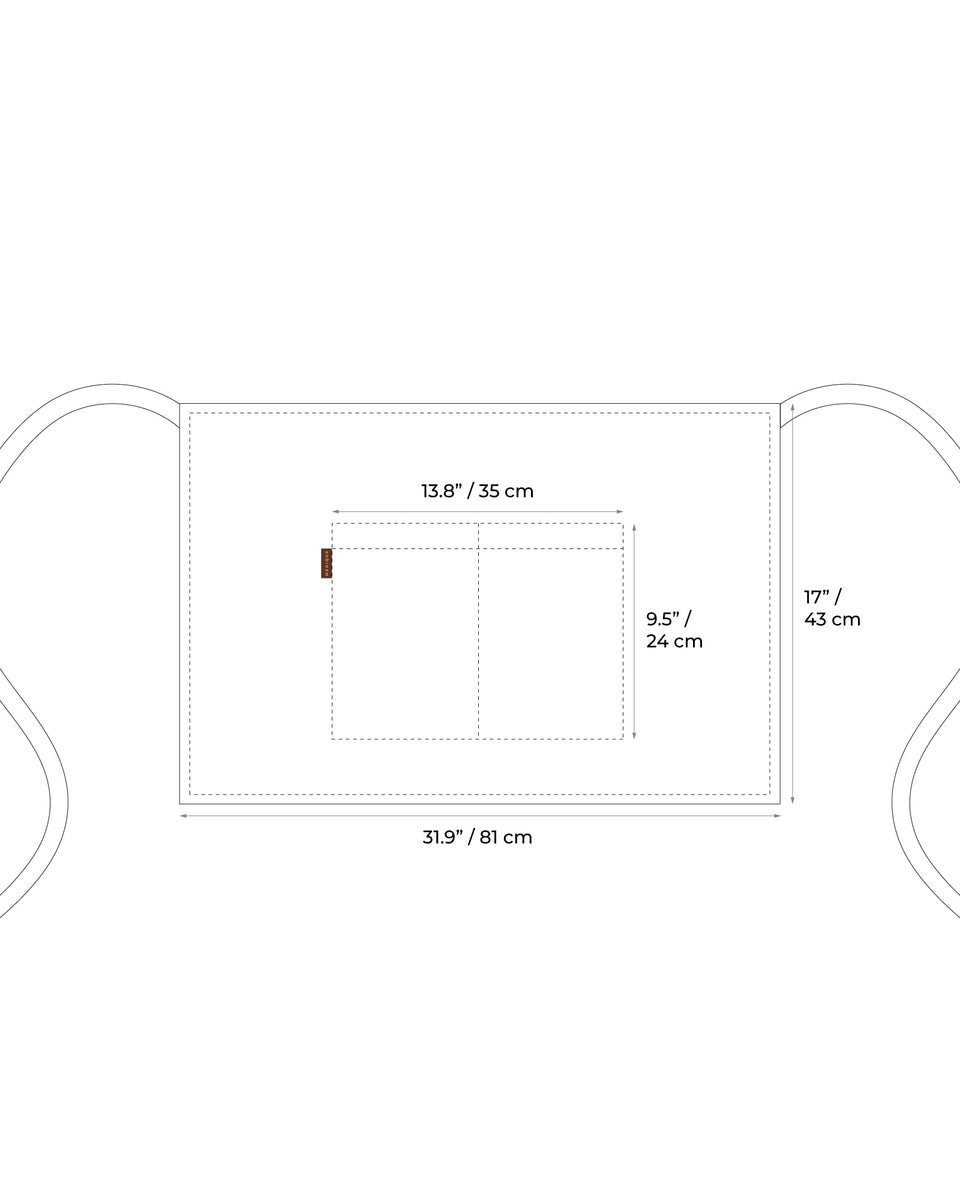 Pocket width 35cm/13.8"; Pocket length 24cm/9.5".